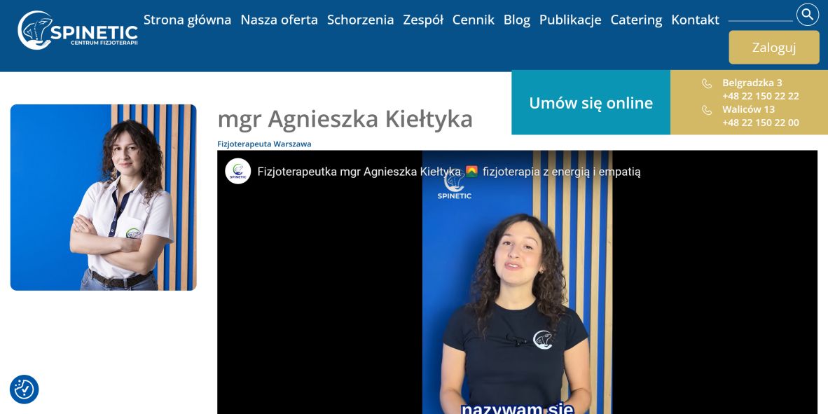 Jestem magistrem fizjoterapii i specjalizuję się w terapii manualnej, rehabilitacji ortopedycznej oraz pracy z pacjentami po urazach i operacjach. Pomagam Czytaj dalej mgr Agnieszka Kiełtyka Fizjoterapeuta Warszawa, Fizjoterapeuta Ursynów